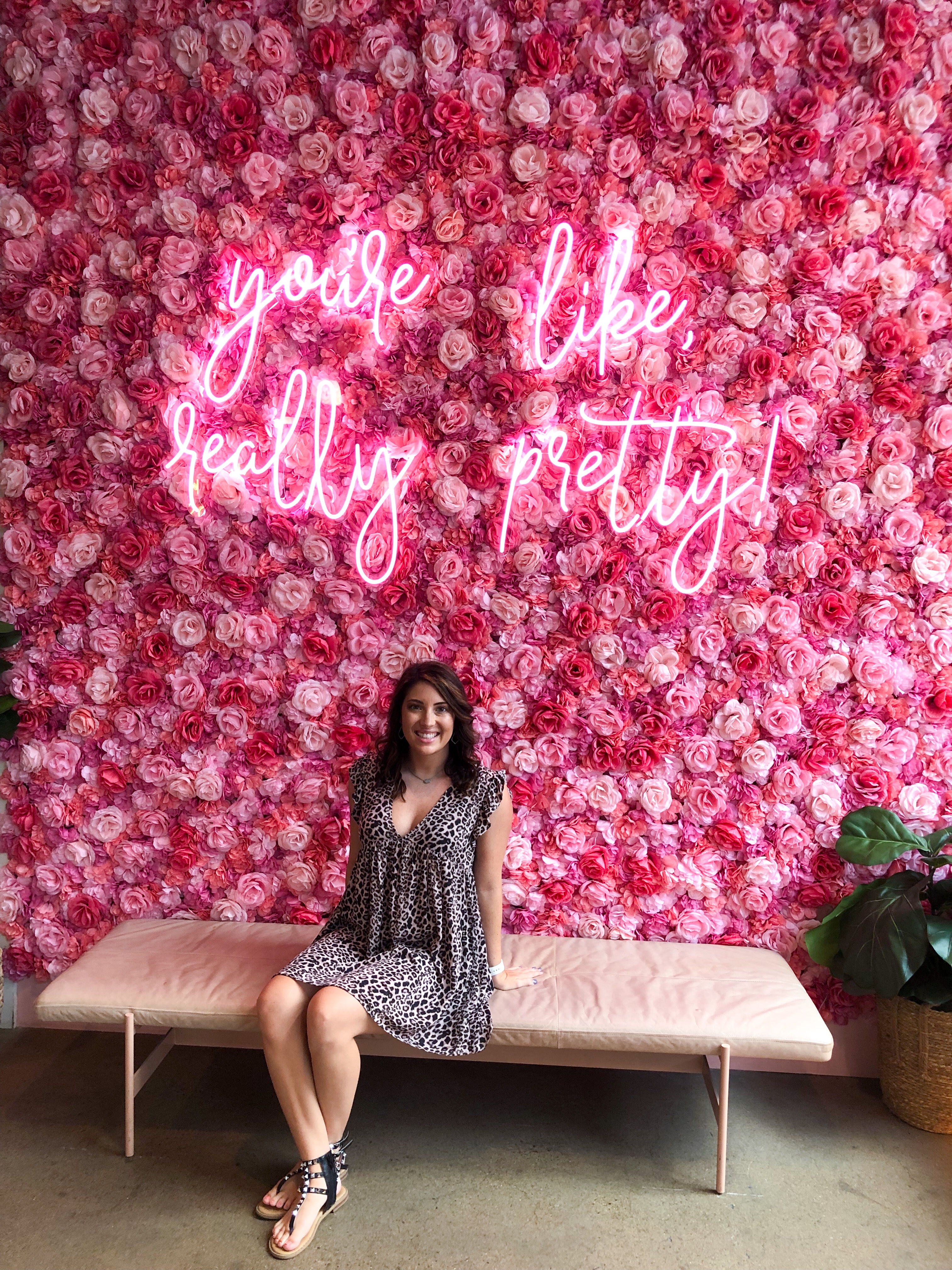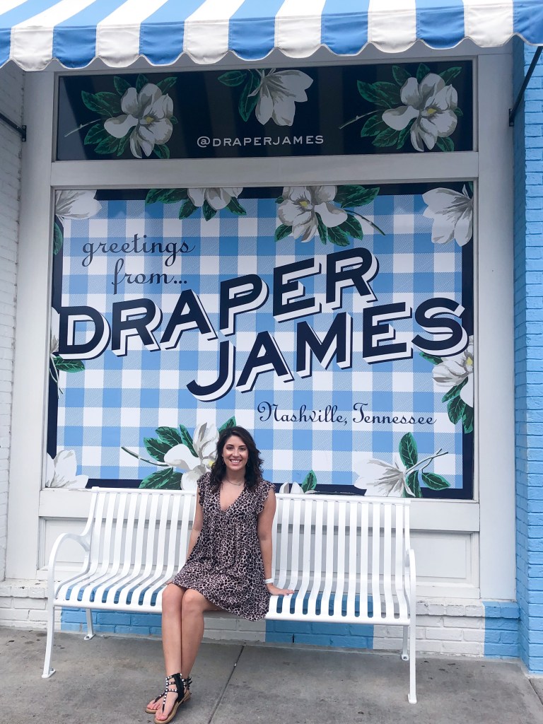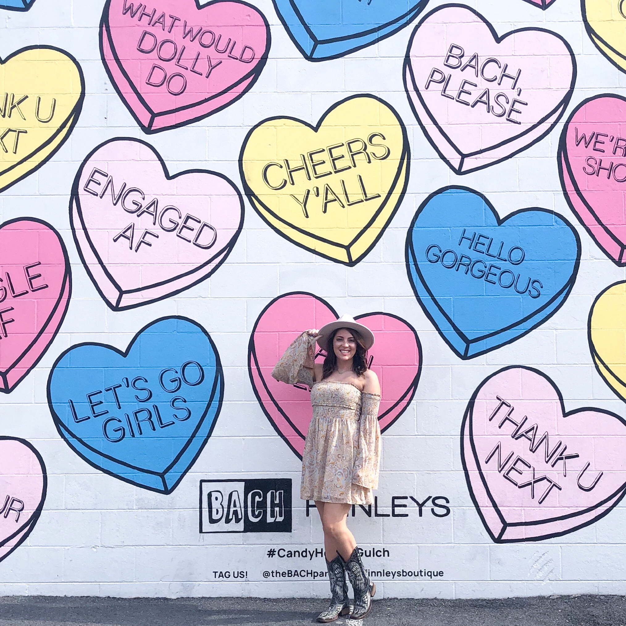 I really wanted to take pictures at as many of the Nashville murals as I could because ya know insta pics. There are some Nashville mural tours that are offered but since we were just kind of winging as we went we weren’t able to book one. I think we found a good majority of them but if I was booking things in advanced or booking for a bachelorette party/ girls trip I would book a tour. We went back to the Gulch where the wings mural is and the store Kittenish because I wasn’t wearing a cute outfit the first day. There are more murals in the Gulch as well. We took pictures, went in a couple of stores and then we Ubered to 12th South where more of the murals are. We took pictures at as many of the murals as we could find. I found a list on the Internet because some of them are a little bit hidden. If you want a calmer area with less people 12th South is a good place to go. It was a nice change of pace. We walked around, took pictures, went in some stores and ate ice cream at Jenni’s Ice Cream. You definitely need Jenni’s Ice Cream while you are in Nashville and there are multiple locations. We also found a super cute boutique store called Finnleys. They have a cute clothes and a cute photo op inside the store. I randomly found their other location on 8th South the next day which has a cute mural on the side.