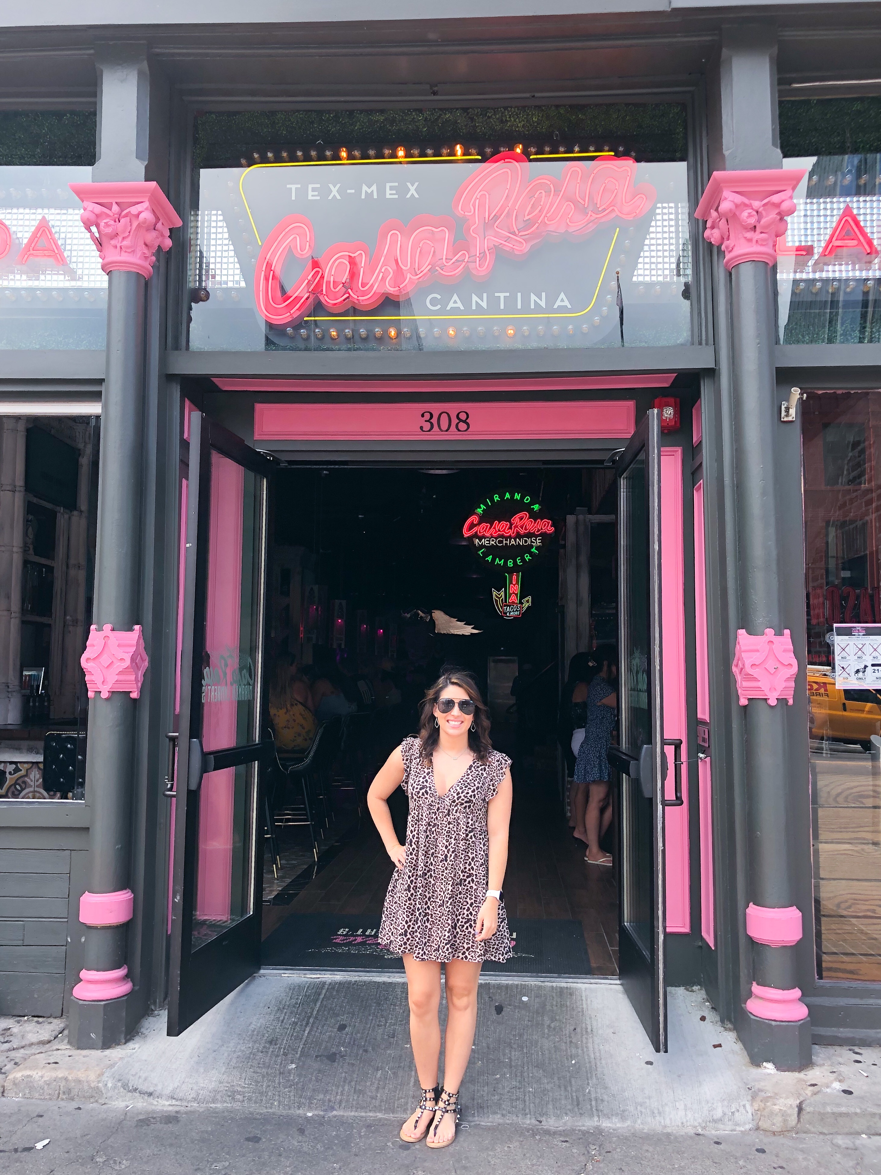 Casa Rosa opened at the end of May so it had only been open about a month by the time we went. At first we didn’t want to eat there because it is Tex-Mex food and we are from Texas. I am so glad we decided to eat there though! We had the bbq quesadillas and they were delicious. We also had their blueberry margarita and it was yummy. We went during the day and it was only about a 30 minute wait for a table but we sat at the bar instead so we didn’t have to wait. The food was yummy and we had great service. Plus, there are super cute photo ops. From the food, to the service, to the unique vibe, this is one of the better restaurants on Broadway.